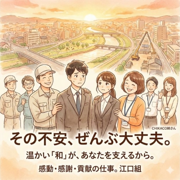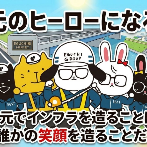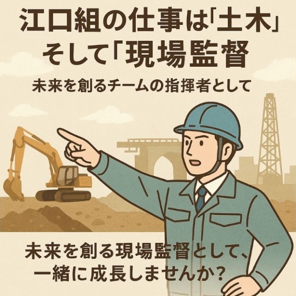 建設会社は街を守り、街をつくる仕事。あなたが進化すれば、江口組も進化する。「やってみよう、ダメなら変えればいい」。その心でチャレンジし続ける人を待っています。小松から建設の世界を変えて行こう!