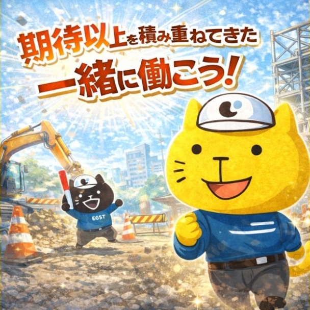 「工事現場が好き。地元が好き。仲間が好き」これら3つの好きのうち1つでも当てはまる人。そしてチャレンジ精神がある人、チームワークを大切にする人を募集しています!